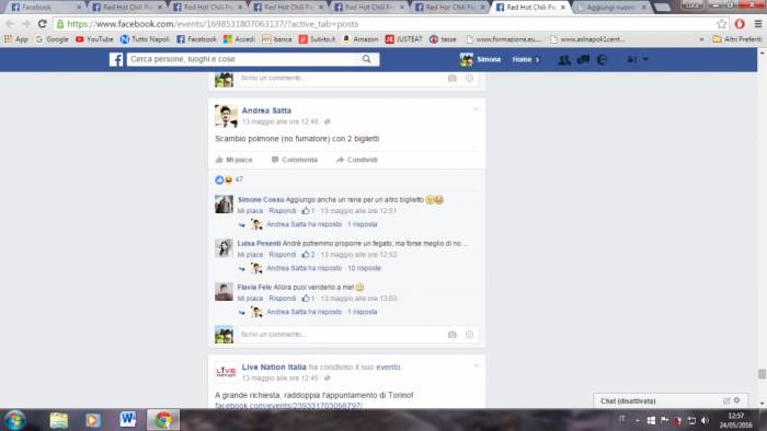 Tanti sono quelli che propongono scambi improbabili come chi propone la cessione del proprio gemello in cambio di un biglietto o chi esagera proponendo organi o cose alquanto strane.